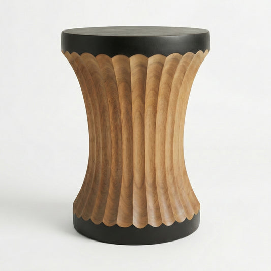 Sculptural Wooden Side Table / Stool 'Rantika' in Natural - 35 x 45 cm