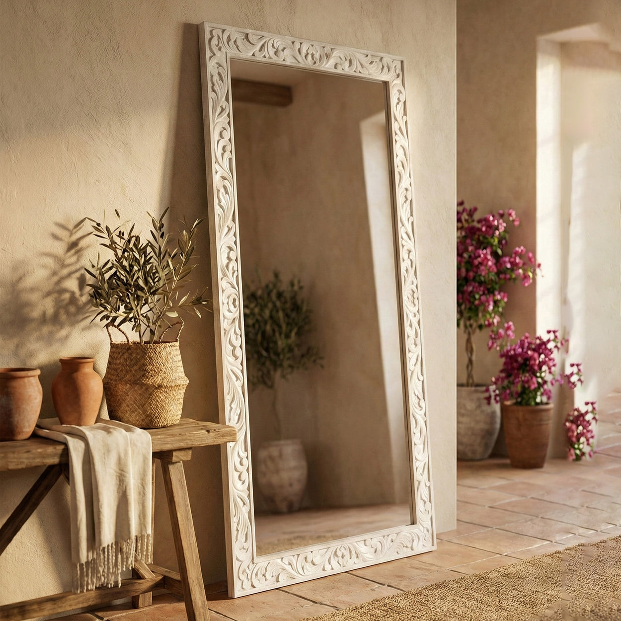Wooden Hand Carved Mirror "Balian" - Natural Wash - 180 x 90 cm