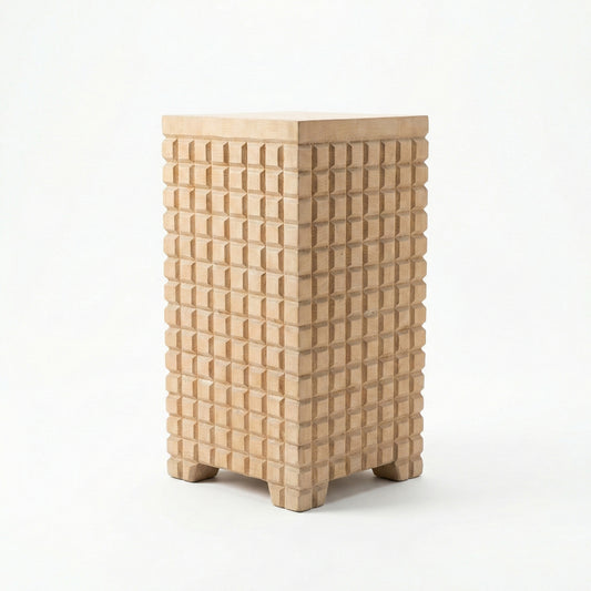 Sculptural Wooden Side Table / Stool 'Kayara' in Natural - 50 x 50 cm