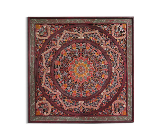 Balinese King Size Carved mandala full bed headboard Manusa in Red - 72 inches - USA