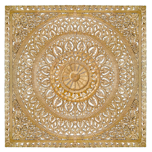 Balinese Carved mandala full bed headboard Dianna | Hand Carved Decor | Balinese Decorative Wall Art | Carved Bed Headboard - Green - USA