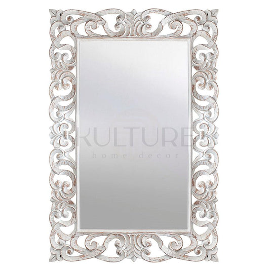 Hand Carved Mirror "Ainaro" - White wash - 180 cm