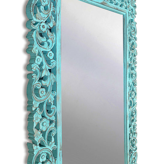 Hand Carved Mirror "Agung" Turquoise Wash - 150 cm