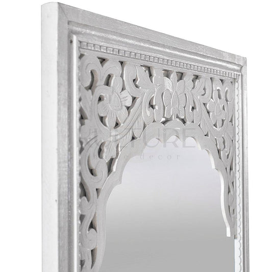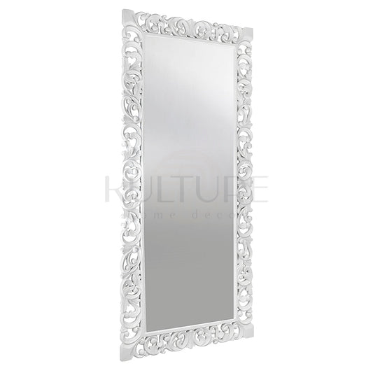 Hand Carved Mirror "Kalbu" White - 180 cm