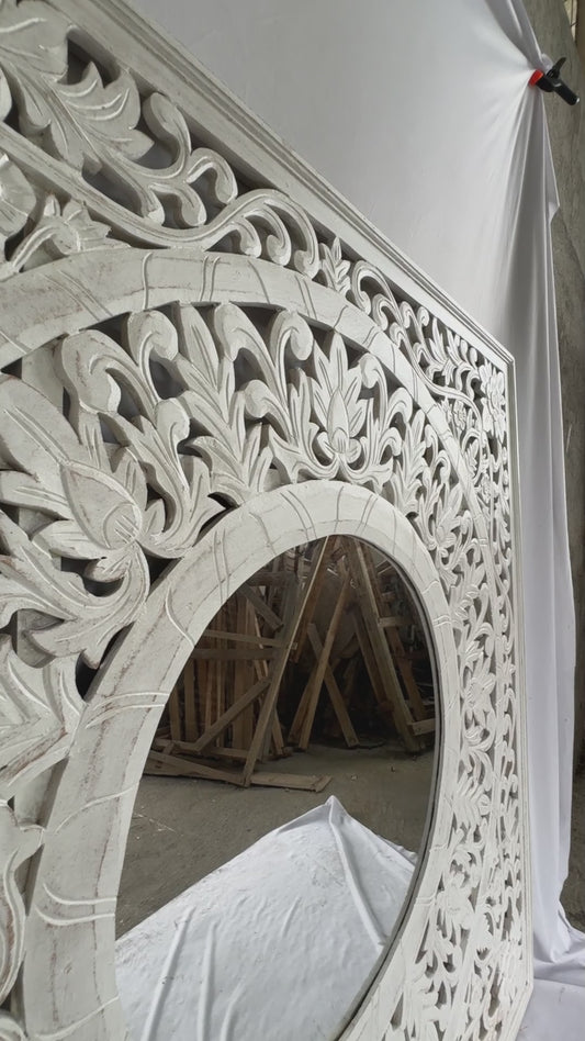 Hand Carved Mirror "Dewata" White Wash - 100 cm