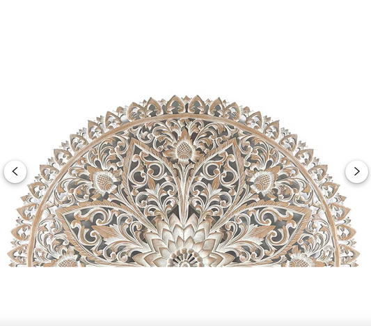 Hand Carved Queen Size Half-moon Mandala Bed headboard Bunga in multi color