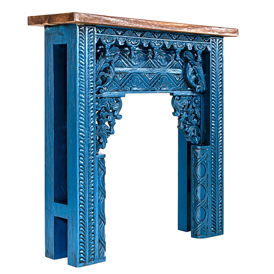 Wooden Carved Console Table "Bumi" - Blue & Natural