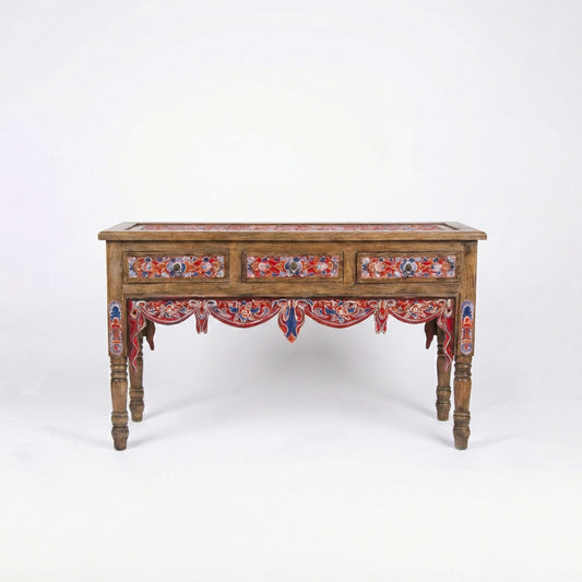 Wooden Carved Console Table "Srikandi" - Red & Blue Wash - 150 cm