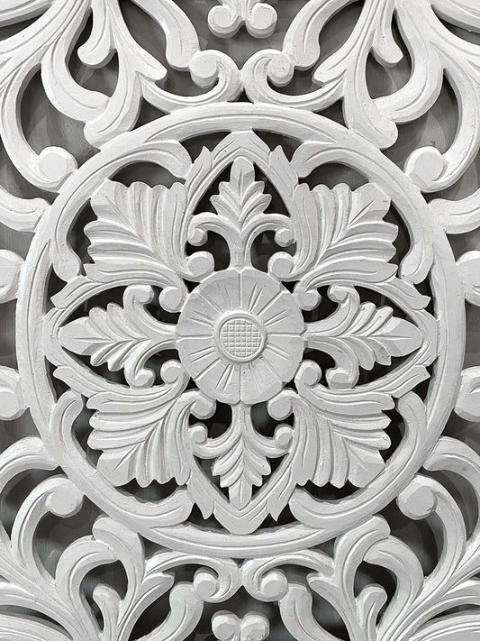 Carved Decorative Panel "Candidasa" in White - 120 cm