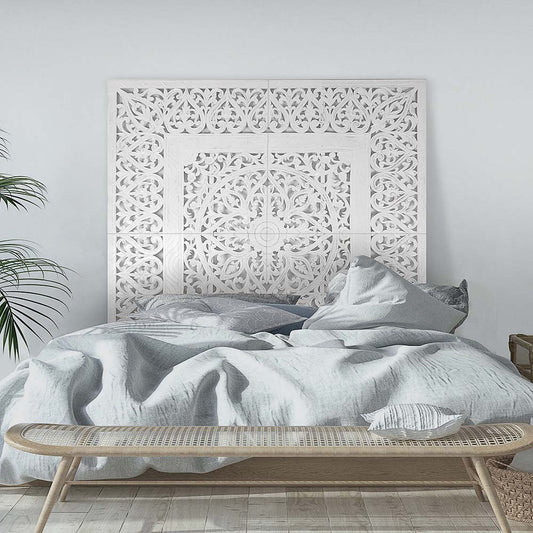 Carved Full Bed Headboard "Raflessia" - White - USA