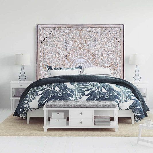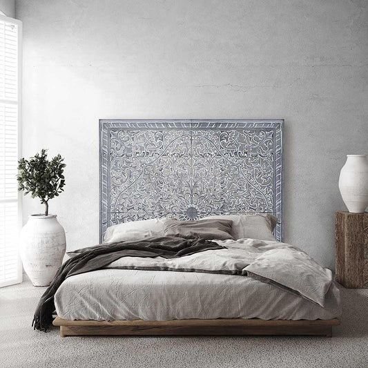 Carved Full Bed Headboard "Peony" - Monochrome Wash - USA