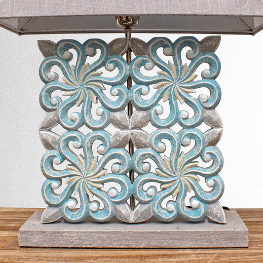 Carved Table Lamp 'Batik' - Blue