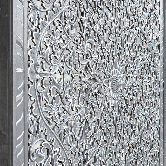 Carved Full Bed Headboard "Raflessia" - Antic-wash
