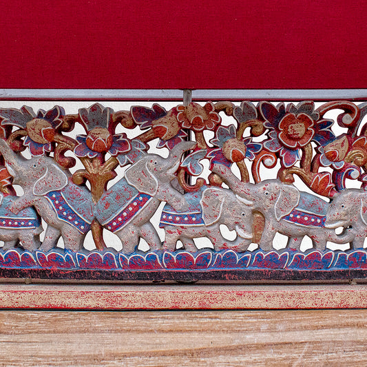 Carved Table Lamp '6 Elephants' - Multicolor Red