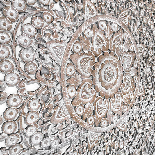 Carved Full Bed Headboard "Raflessia" - Antic-wash