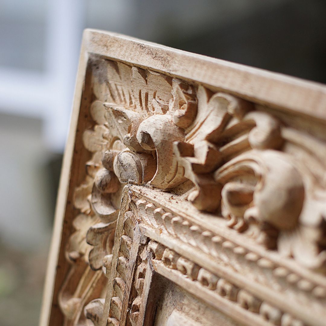 Our skilled craftsmen create unique designs for each wood carved mirror by sketching directly onto the wooden frame by hand. This requires a high level of artistic abilities and attention to detail.