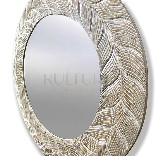 Hand Carved Mirror "Wanasari" White Wash - 70 cm
