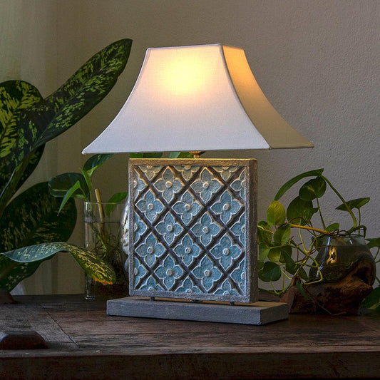 Carved Table Lamp 'Geo' - Blue