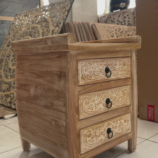Carved Bedside Table 'Puspita' - White Wash