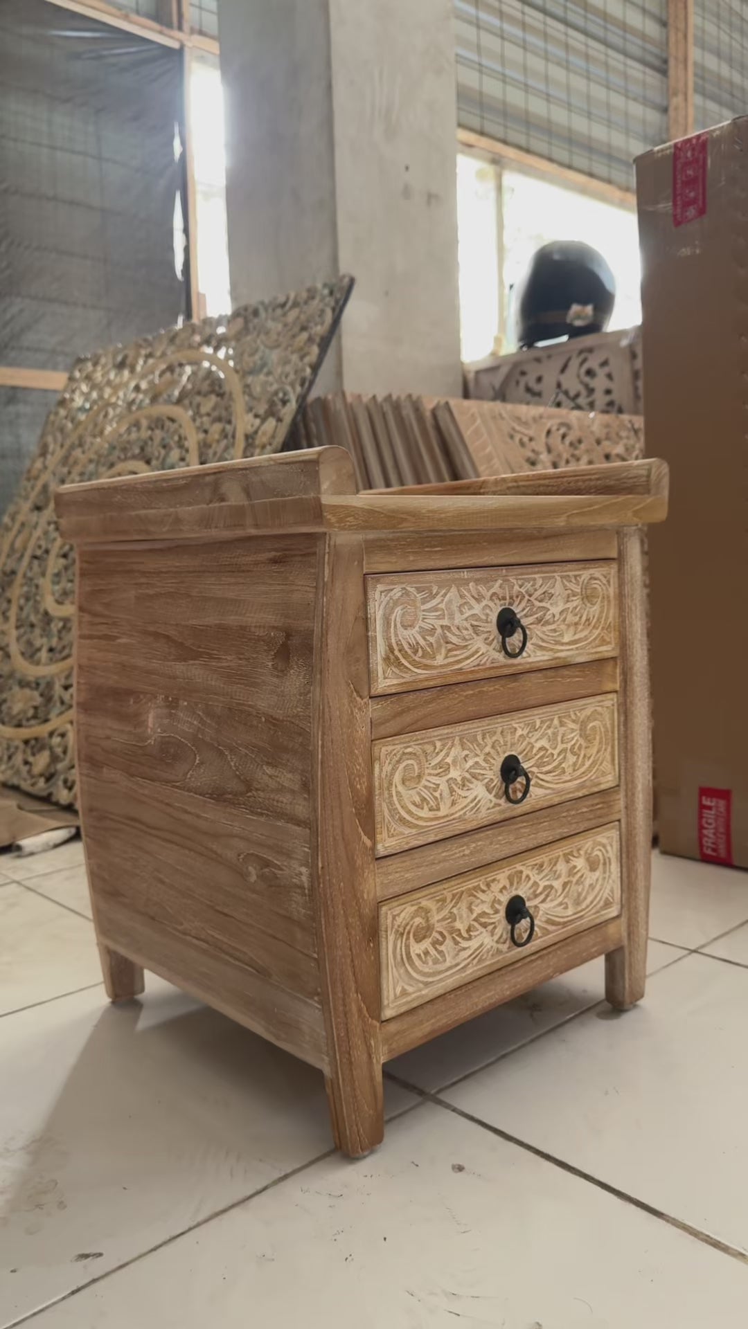 Kulture Home Decor always strive to bring you the best of Indonesian furniture to your doorstep! Give the ultimate exotic Balinese vibe to your bedroom with this high-quality carved bedside table!