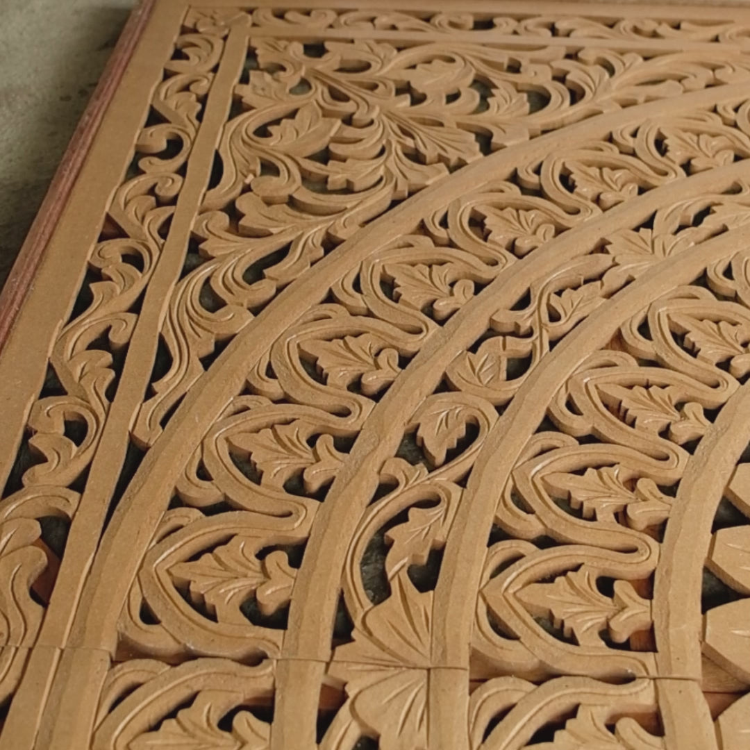 Carved Full Bed Headboard "Seruni" in Natural Brown