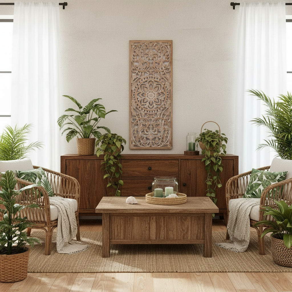 Each piece is meticulously handcarved from scratch by skilled Balinese artisans, using ancient wood-carving techniques passed down through generations.
