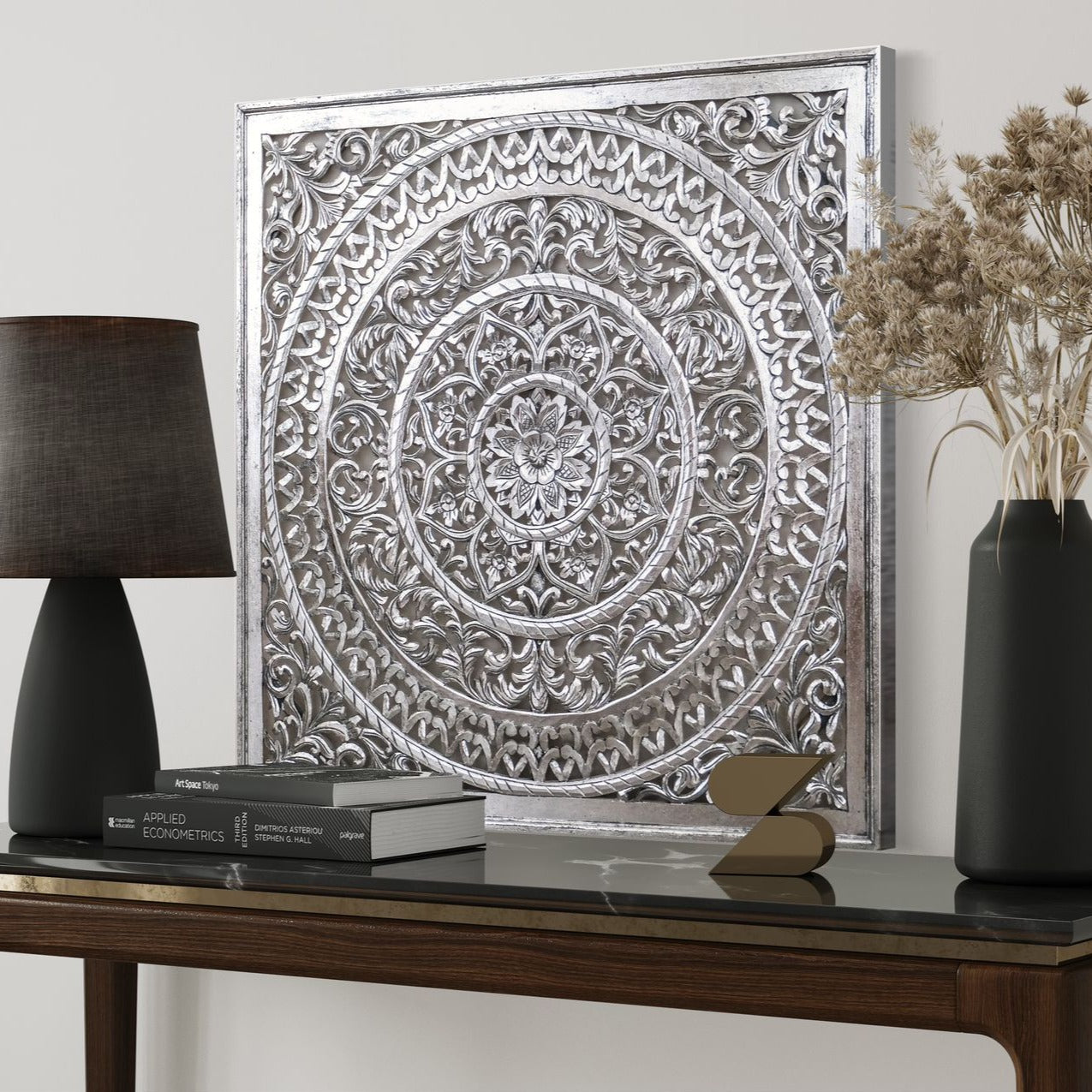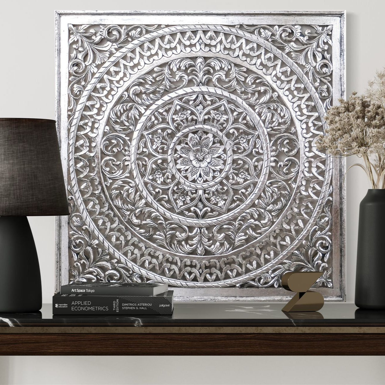 Hand carved by a local craftsman in Ubud, Bali, this intricate decorative panel depicts a big lotus flower, a very common plant on the island of Gods.