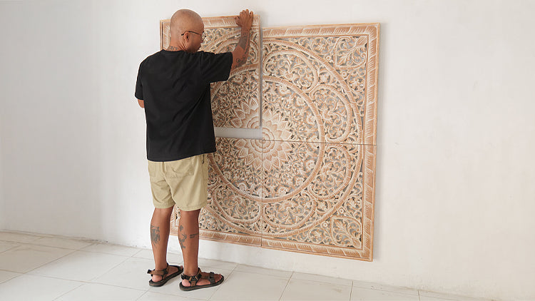 Crafted by skilled Balinese artisans, the Manusa Wooden Bed Headboard is a masterpiece of tradition and craftsmanship. Each piece is 100% handmade, intricately carved using simple tools—no machines—ensuring unmatched detail and uniqueness. Rooted in spirituality and beauty, this headboard brings the essence of Bali into your home.