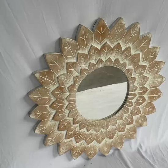 Hand Carved Mirror "Yogamaya" antic wash - 60 cm